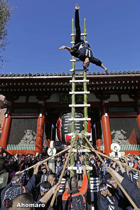 雷門前の演技を終え、全員が木遣歌で手締めです。