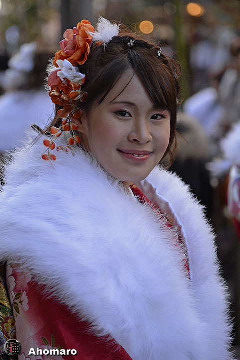 浅草の街中に晴れ着姿があふれる光景なんてのは、成人式の日だけ、あほまろも寒かったけど、カメラを持って成人式会場の浅草公会堂前で晴れ着姿をいっぱい撮ってあげました。