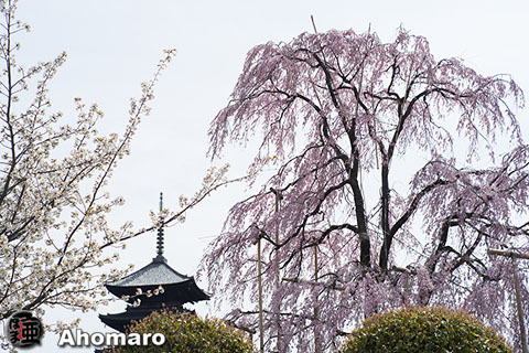 醍醐寺の桜に満足し、その後、伏見稲荷のおいなりさんで昼食、シダレザクラで有名な東寺にも行ってみたけど、