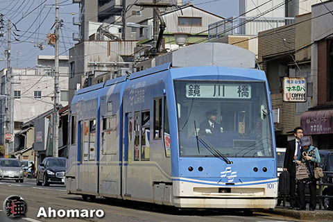 取材を簡単に済ませた帰りは、もちろん大好きな土佐電鉄を追いかけながら撮り鉄三昧ですね。土佐電鉄は1990年からドイツ・シュトゥットガルト市電を始めとする日本国外の路面電車を運行させています。また、電車車体の全面広告でも鉄道ファンに有名ですね。