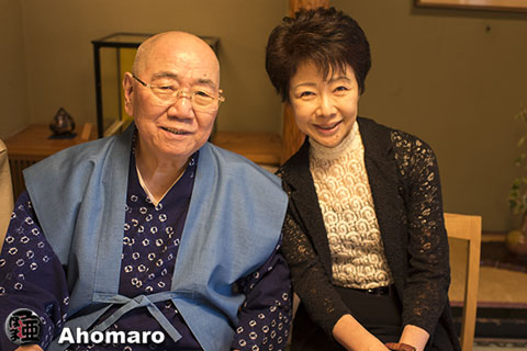 和服姿で参加した、上野の伊豆栄の社長と円歌師匠。