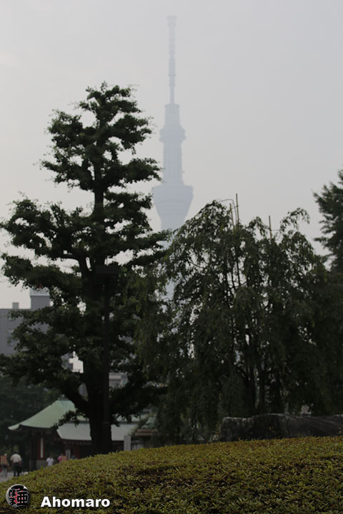 境内から望む東京スカイツリーは霞んでました。