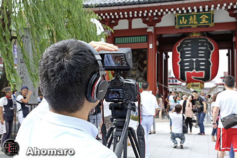 雷門前では浅草らしく、永井荷風似さまご一行をモデルに(笑)