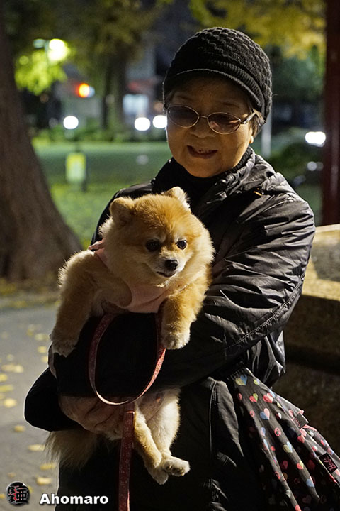 ちょうど鐘が鳴った弁天山でジョイ君。