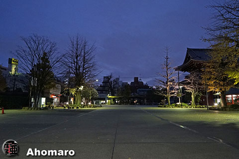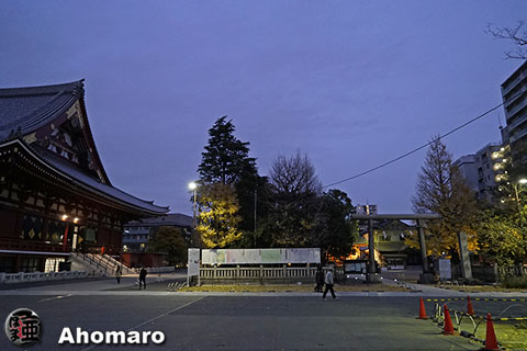 今朝の日の出:午前6時43分。雷門前:6時5分。 雷門の裏側。 仲見世。 伝法院前。 宝蔵門。 二尊仏さま。 三地蔵さま。 母子地蔵さま。 五重塔。 宝蔵門の裏側。 浅草寺本堂。 本堂正面。 平和の時計。 浅草神社。 本殿前。 ソメイヨシノ。 浅草寺のパワースポット。 まだ人影の少ない境内。 浅草寺の開門は午前6時30分です。 今日もいちにちよろしくお願いいたします。 みなさんまた明日ね。 冬の境内をご覧ください。 影向堂。 銀杏。 ノムラモミジ。 境内から望む東京スカイツリー。