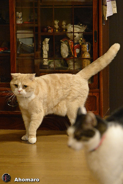 猫が犬に気に入ってもらおうと機嫌をとる卑屈な行為、日記を見ているみんなが吐き気をもよおしている、ニャロメ。