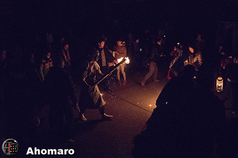 見物客は、地面に叩き付けられた松明から落ちた炭を我先にと拾い集めるのです。