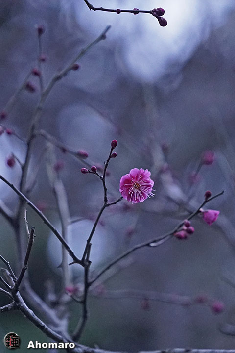 奥山の紅梅。