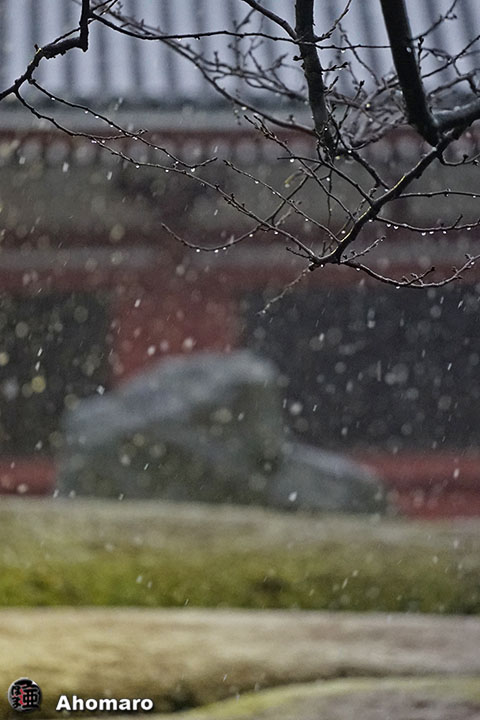 雪の境内をご覧ください。