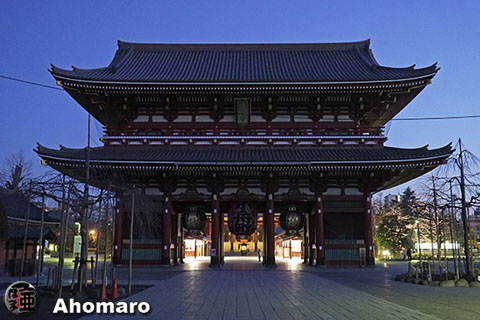 今朝の日の出:午前6時22分。雷門前:5時45分。