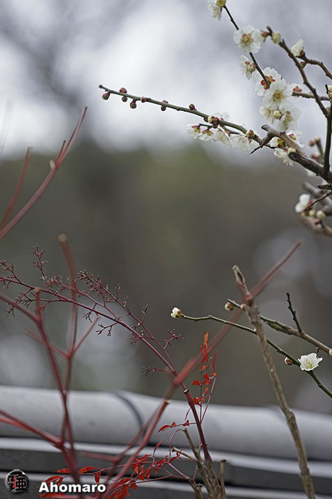 淡島堂の紅梅。