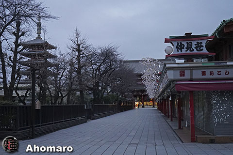 今朝の日の出:午前6時1分。雷門前:5時40分。