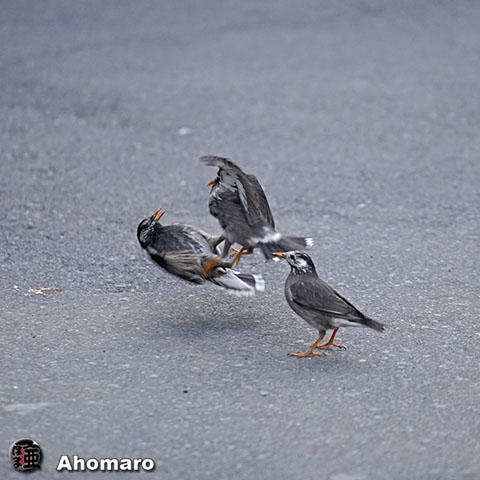 今朝、弁天山の下で、ムクドリの喧嘩を見てしまいました。