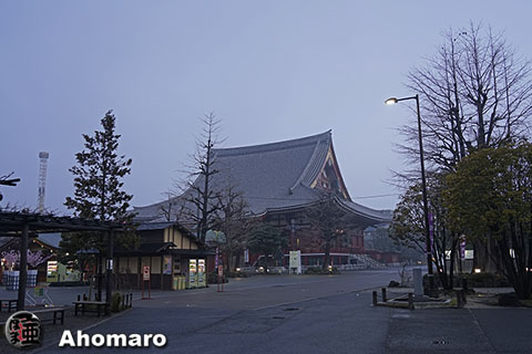 今朝の日の出:午前5時50分。雷門前:5時35分。