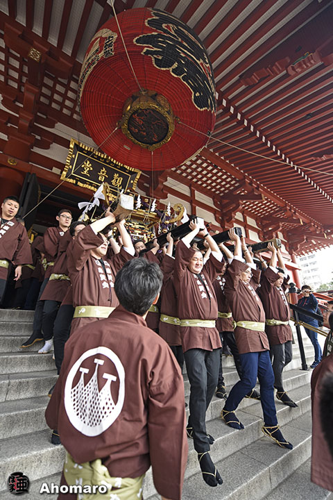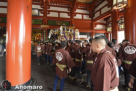昨日の午前9時、浅草寺示現会で本堂内で一晩お籠もりになられた三社御輿の堂下げが行われました。