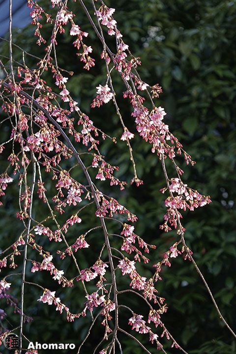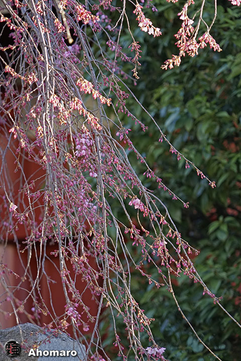 六角堂のしだれ桜も開花しました。
