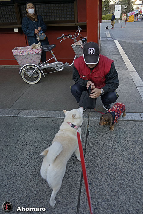 今朝はお豆腐色のベッちゃんさんと宝蔵門から帰って来ました。