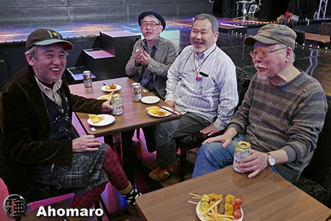 あほまろ一門も参加。左から、漫画家:亜寳より馬鹿(あほよりましか)と息子さん、イラストレータ:泉多麻呂、助手:町田古麻呂。