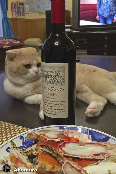 ヤマト君の晩酌。あほまろは禁酒中だけど、フランスでワインは水変わり、子どもたちまで飲んでるんだってよ。