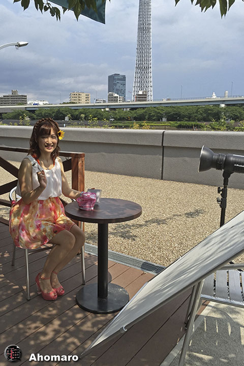 今朝の疲れの原因は飲み過ぎたからじゃありません。昨日はちょっと忙しすぎただけ。お昼から隅田河畔のカフェにて、とある歌手のCDジャケットの撮影。