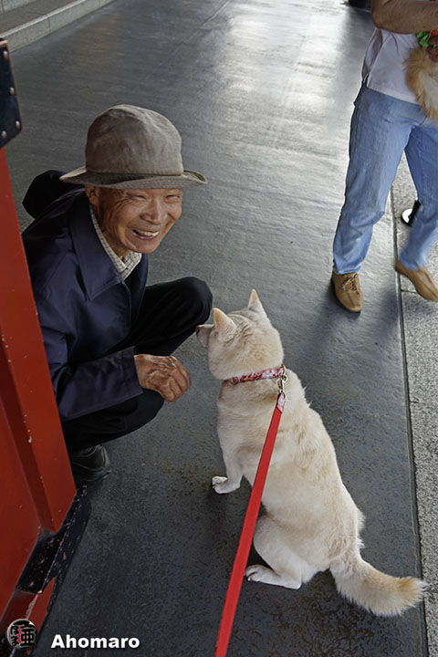お盆のお参りを終えて、いつものおじさんからおやつを貰うよ。