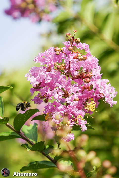 サルスベリの花言葉は、「雄弁」「愛嬌」「不用意」なんだって。確かにまだ総ての花が整っていないから「不用意」なのかな・・・。
