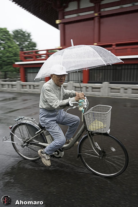 おはようございます。いつも元気なおかあさん、雨でも朝のお参りは欠かしません。