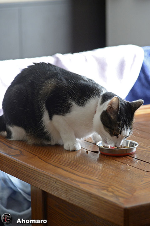 ちょっと待ってね、ヒロちゃんまだごはん食べてるの。