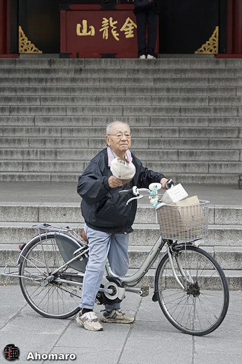 おはようございます。いつも元気な自転車おじさん、ラジオ体操前のお参りは欠かしません。