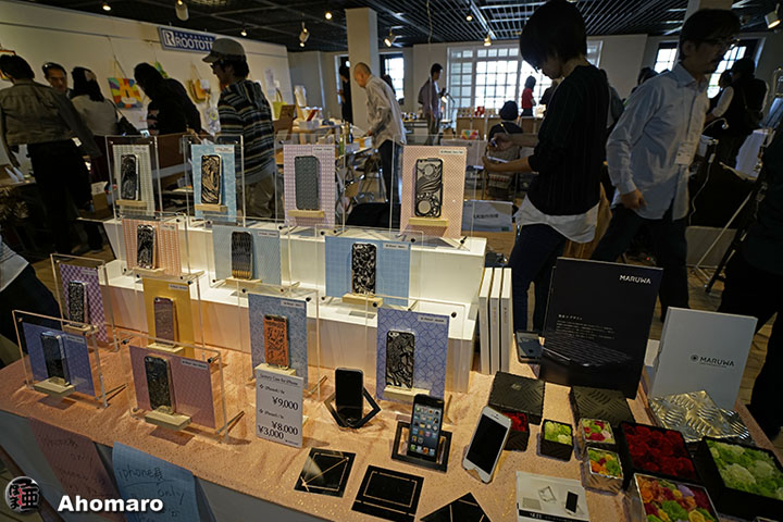 iPhoneケースをキャンバスに100名を超えるアーティストが参加した「世界に1つのアートなiPhoneケース」の展示場。