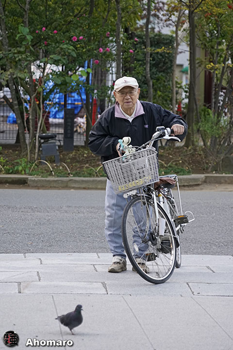 おはようございます。いつも元気な自転車おじさん、ラジオ体操前のお参りは欠かしません。