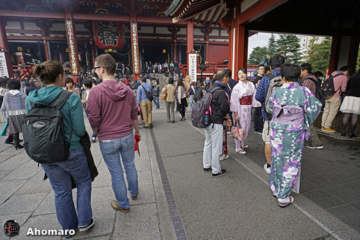 朝とは全く違う雰囲気になってしまう、浅草寺本堂前です。