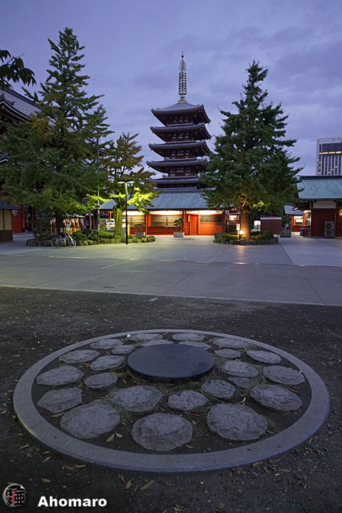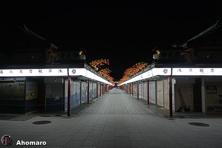 今朝の日の出:午前6時15分。雷門前:5時35分。けさは仲見世の灯りが点ってました。