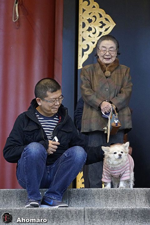 本堂上に、メイちゃんとモモちゃんのおにいちゃん。
