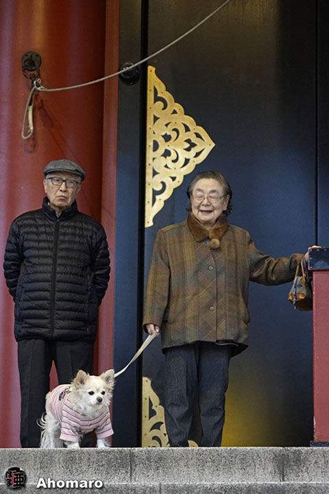 真っ暗な仲見世でクレアファミリー。LEDライトを使ったよ。