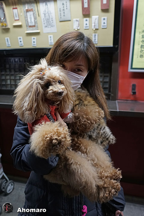 砂肝の秀蔵親分とお豆腐色のベッちゃんさんが鎮護堂から出て来たよ。