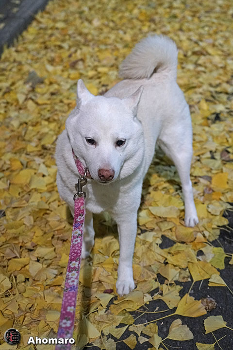 これが桜の花びらなら、川に散り敷かれた花びらを「花いかだ」と見立てるのが日本の風情だけど、銀杏の葉で「葉いかだ」とは表現しにくいかもね。