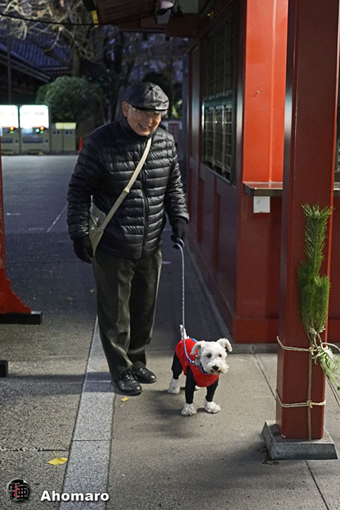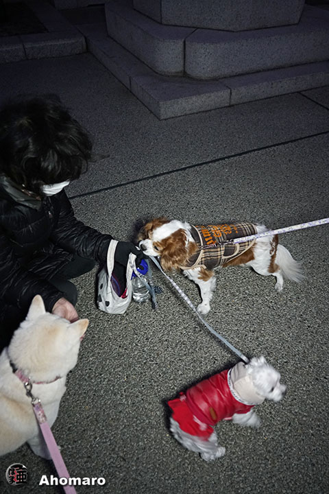 真っ暗な仲見世をココアファミリーが帰って来ました。