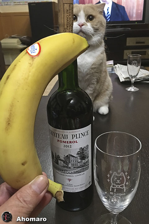 ヤマト君の晩酌。バナナなんて喰いたくない、ニャロメ。