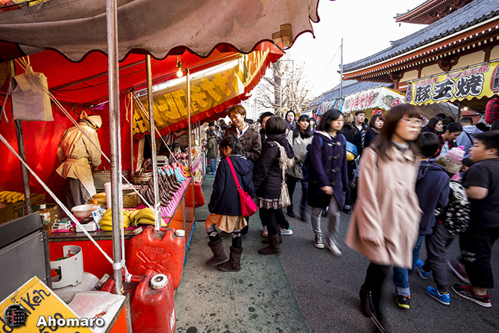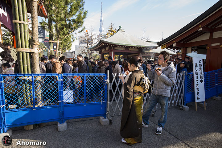 浅草寺での初詣は延々並ばなくちゃいけません。