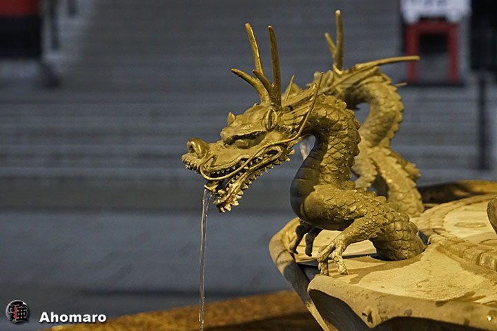 浅草寺のお水舎に、高村光雲作の龍神像(沙竭羅(さから)龍王像)が建立され、その周りに竜が口から水を吐いています。
