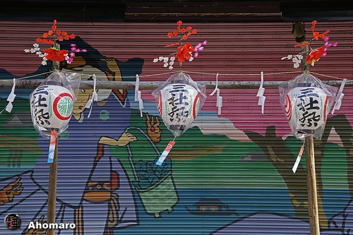 一昨日の強風で吹き飛ばされた仲見世の三社祭の提灯が掛け替えられました。ちゃんと予備も準備されていたのですね。