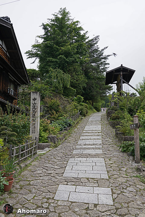 まずは、島崎藤村のゆかりの馬籠宿(まごめじゅく)。石畳の敷かれた坂に沿う宿場町で、ここを訪れるのは4度目でしたが、最後に訪れてから20年以上も経って、石畳の雰囲気もどこか近代的になってしまったようでした。