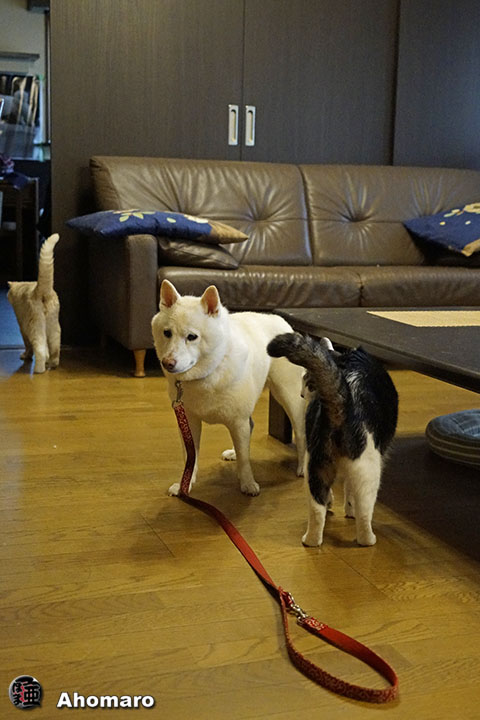 オマイのおかげで、家の中もびちょびちょだ、ニャロメ。