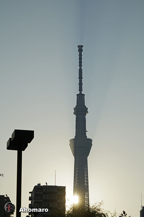 太陽が東京スカイツリーのど真ん中に入ると、勢いよく拡散半影が凄いでしょ。