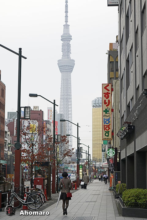 山々では一気に紅く燃えてきたようですが、浅草寺境内のカエデはようやく色付いてきましたよ。