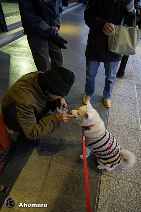 参拝を終えたら、いつものおじさんからデブの素を貰います。
