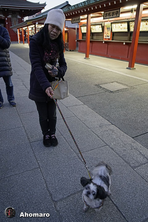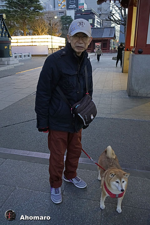 浅草神社前にウメちゃん。