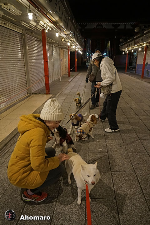 広い仲見世、今朝はワンちゃんたちだけでしたね。