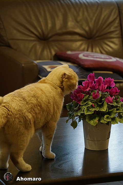 ナナちゃんお帰りなさい。 ヒロちゃん待ってたよ。 今朝は北風ピューピュー寒かったね。 寒いからヤマト君待って無い。 お家の中は暖かいでしょ。 晩酌の場所に変なの置いたな、ニャロメ。 おかあさんがお花を買って来たんだよ。 食事の場所に食えない物を起きやがって。 ヤマト君も花のある暮らしで心に余裕を持ちなさいよ。 何が余裕だ、ヤマト君は花より団子よ。 花の美しさがわからない猫なんて、ナナちゃん大嫌い。 ヒロちゃんはお花で心が和むんだよ。 野良猫に戻って、路傍の花と戯れてろ、ニャロメ。